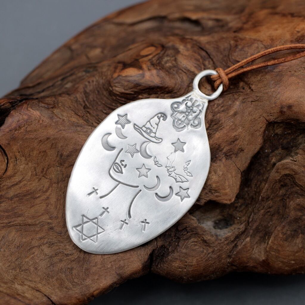 シルバースプーンのホール部分をペンダントに再構築しました。