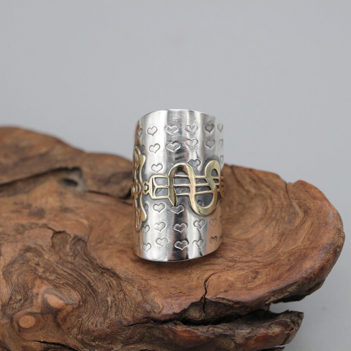 ハートをびっしりと刻印し、真鍮のダガーと蛇を合わせました。