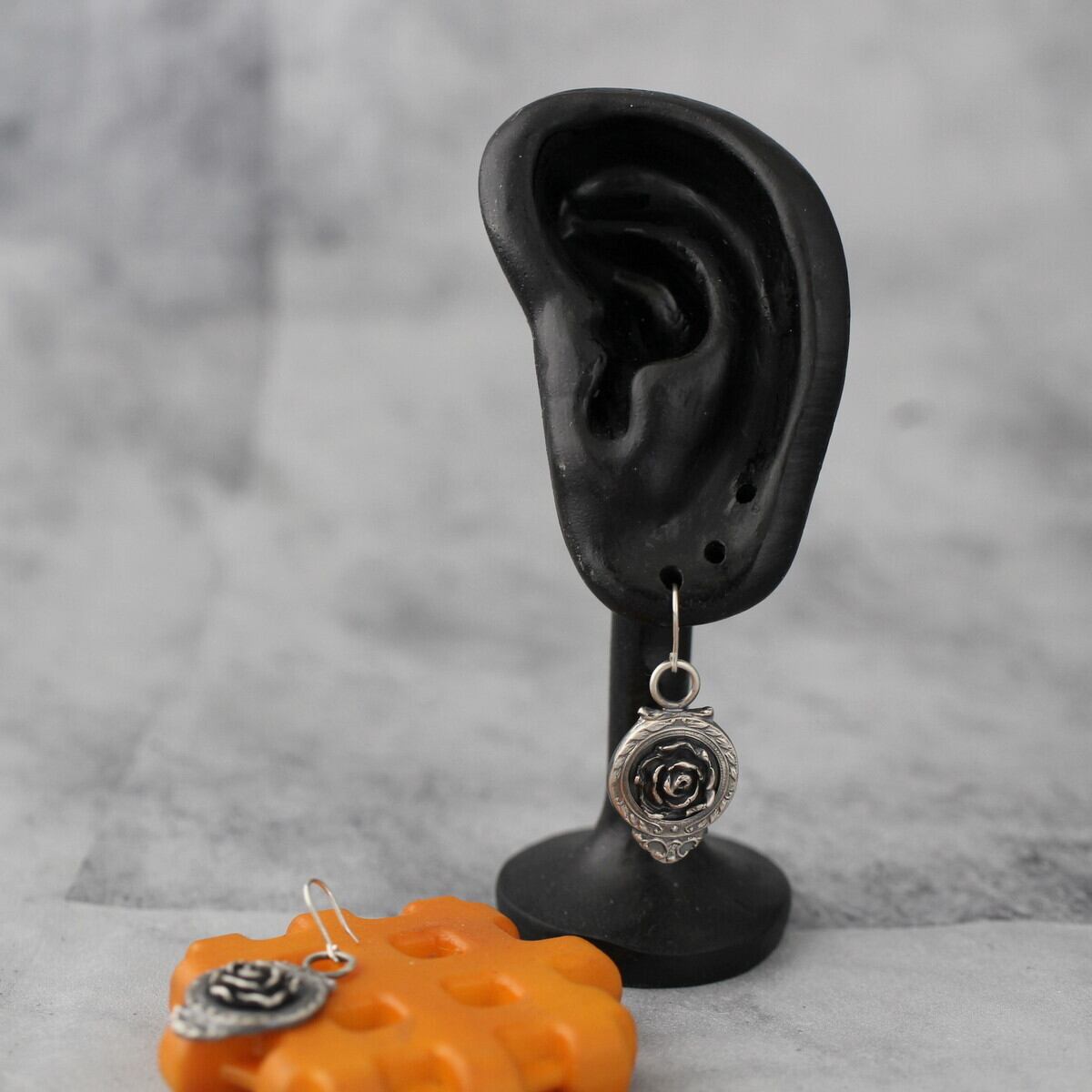 薔薇は銀粘土で成形しました。